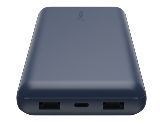Branchez-vous sur une charge puissante et portable avec la banque d'énergie 20K de Belkin. Elle fournit de l'énergie via son port USB-C et ses deux ports USB-A, ce qui vous permet de charger jusqu'à trois appareils en même temps. La puissance de 20 000 mAH offre plus de 75 heures d'autonomie supplémentaires à vos appareils, afin que vous puissiez rester connecté plus longtemps, où que vous soyez.