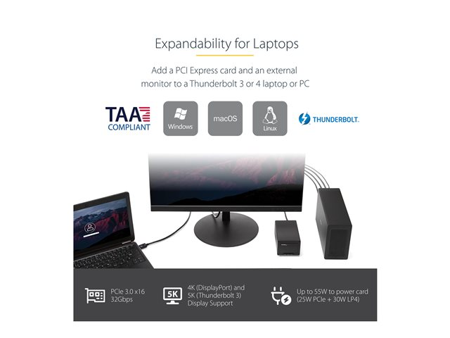 StarTech.com Thunderbolt 3 PCIe Expansion Chassis, External Enclosure Box with 1x PCI-Express Slot, 5K/4K Output Via TB3/DP Ports, TAA