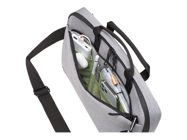 L'Eco slim case Motion est une sacoche pour ordinateur portable légère et fine. Les appareils de 10 à 11,6 pouces sont bien protégés dans le compartiment matelassé pour ordinateur portable. La pochette offre une protection fiable pour les tablettes jusqu'à 10,9 pouces. La sacoche est confortable à transporter grâce à sa poignée rembourrée et à sa bandoulière réglable. Le compartiment supplémentaire au dos est particulièrement pratique pour ranger facilement des documents. Votre smartphone ou d'autres petits objets tels que des câbles, des stylos ou des chargeurs peuvent être rangés dans la poche frontale pratique, afin d'être toujours à portée de main. La sacoche est fabriquée en matériau hydrofuge pour protéger son contenu même par temps de pluie. L'Eco slim case Motion est donc parfaite pour vous si vous êtes toujours en déplacement et si vous souhaitez soutenir le recyclage des bouteilles en PET avec une sacoche écologique.