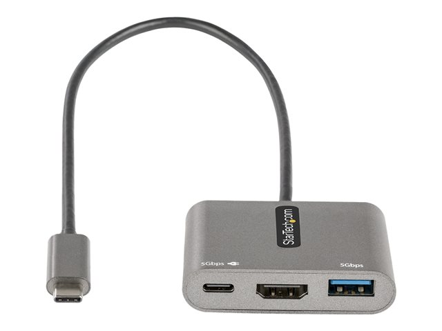 StarTech.com Adaptateur USB-C HDMI, Adaptateur Multiport USB-C vers HDMI 4K, 100W PD Passthrough, Hub USB 3.0 5Gbps (1xType-C/1xA), Mini Dock USB-C, Station d'accueil portable USB-C (CDP2HDUACP2)