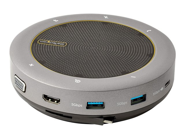 StarTech.com USB-C Conference Speaker Mini Dock, Portable Boardroom Speaker and Multiport Adapter, USB-C to VGA or 4K 60Hz HDMI, 2x USB-A (5Gbps) Hub, Mic/Speaker