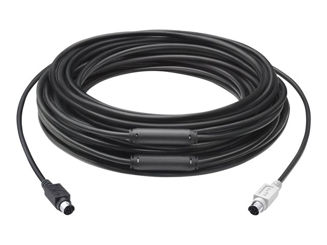 UN CÂBLE PLUS LONG POUR DE TRÈS GRANDES SALLES Équipez les grandes salles de réunion avec la rallonge de 15 m de Logitech GROUP. Ce câble triple la distance entre le hub et la caméra ou le haut-parleur jusqu'à 15 mètres par rapport au câble standard inclus dans le produit GROUP. Conçu et fabriqué par Logitech spécialement pour Logitech GROUP , ce câble ignifugé peut être acheminé via un conduit et garantir des installations propres dans les salles de conférence.