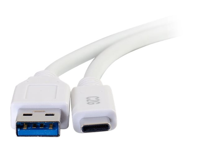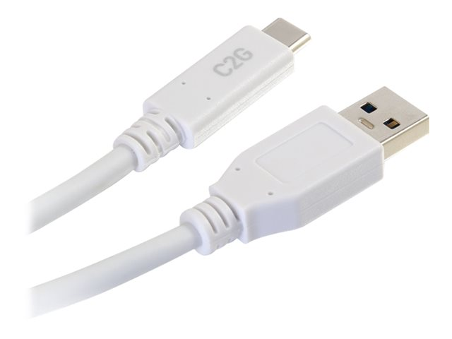 USB C to USB A - M/M - Câble USB - USB type A (M) pour 24 pin USB-C (M) - USB 3.1 - 30 V - 3 A - 3.05 cm - blanc