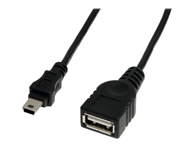 Cordon USB A vers Mini B - Femelle / Mâle - Noir - Câble USB - USB (F) pour mini USB type B (M) - USB 2.0 - 30 cm - noir