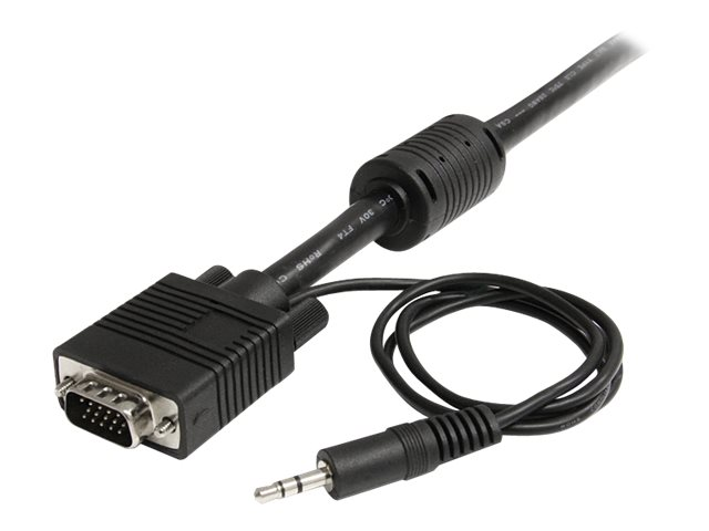 Ce câble VGA haute résolution avec audio StarTech.com comporte un câble coaxial mâle-mâle de qualité supérieure, conçu pour éliminer les images fantômes et floues propres aux câbles non coaxiaux et assurer une protection supérieure contre les interférences EMI en ayant recours aux tores magnétiques situés près des extrémités du connecteur.