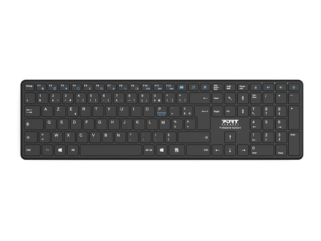 Le clavier professionnel rechargeable Bluetooth de PORT Connect est doté de touches ciseaux confortables et précises avec un design ultra-fin et élégant. Libérez-vous des piles grâce à son système de recharge via USB-C. Une charge complète peut durer jusqu'à 2 mois. La longévité de la batterie est optimisée grâce à son bouton ON/OFF et à sa technologie Bluetooth basse énergie. Profitez d'une portée d'utilisation jusqu'à 8 mètres pour une grande liberté de mouvement. Bénéficiez d'une expérience fluide et réactive grâce à ses touches de raccourcis et ses indicateurs LED. Compatible avec les appareils Windows, Mac OS, iOS et Android.