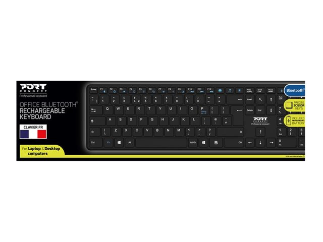 Le clavier professionnel rechargeable Bluetooth de PORT Connect est doté de touches ciseaux confortables et précises avec un design ultra-fin et élégant. Libérez-vous des piles grâce à son système de recharge via USB-C. Une charge complète peut durer jusqu'à 2 mois. La longévité de la batterie est optimisée grâce à son bouton ON/OFF et à sa technologie Bluetooth basse énergie. Profitez d'une portée d'utilisation jusqu'à 8 mètres pour une grande liberté de mouvement. Bénéficiez d'une expérience fluide et réactive grâce à ses touches de raccourcis et ses indicateurs LED. Compatible avec les appareils Windows, Mac OS, iOS et Android.