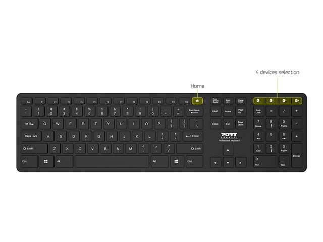 Le clavier Bluetooth de PORT Connect Office dispose de 109 touches confortables (disposition QWERTY) et est parfait pour les utilisateurs à la recherche d'un clavier ultra fin et élégant. Grâce à la technologie sans fil Bluetooth, ce clavier peut connecter jusqu'à 4 appareils simultanément avec une portée allant jusqu'à 10 mètres. Son interrupteur marche/arrêt combiné au mode de veille automatique augmente la durée de vie de la batterie jusqu'à 6 mois. Profitez d'une expérience fluide et réactive grâce à son design haut de gamme et à ses indicateurs LED pour le verrouillage des chiffres, des majuscules et du défilement. Compatible avec les ordinateurs portables et de bureau Windows, il suffit de le connecter à votre appareil pour commencer à travailler.