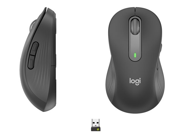 Souris - grande taille - pour gauchers - optique - 5 boutons - sans fil - Bluetooth, 2.4 GHz - récepteur USB Logitech Logi Bolt - graphite