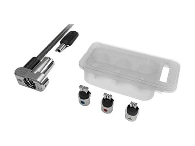 Découvrez notre câble à clé qui répond à tous vos besoins. Le câble de sécurité à clé universel 3 en 1 est compatible avec toutes les encoches de sécurité (Kensington standard, nano et Wedge), ce qui en fait une solution parfaitement évolutive. Les embouts de sécurité sont facilement interchangeables et se rangent dans la boite attachée au câble. L'association du système de clé 5 mm, de la technologie brevetée Hidden Pin et d'un câble en acier carbone apporte une forte protection contre toute tentative de crochetage ou de vol. Le verrou est pivotant et rotatif pour faciliter l'insertion de la clé. Le câble inclut également le programme Register & Retrieve permettant une récupération simple, rapide et sûre des combinaisons, ainsi qu'une garantie de cinq ans par Kensington, inventeur et leader mondial des câbles de sécurité pour ordinateurs portables. La résistance, l'endurance physique et la résilience mécanique de tous les câbles Kensington sont testées et vérifiées.