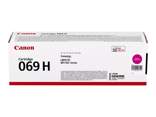 Utilisez la cartouche de toner magenta à haut rendement 069H avec votre imprimante laser compatible pour garantir des impressions toujours impeccables. Une cartouche pleine donne un rendement d'environ 5 500 pages (ISO/IEC 19798), offrant la longévité nécessaire pour répondre à toutes vos demandes d'impression.