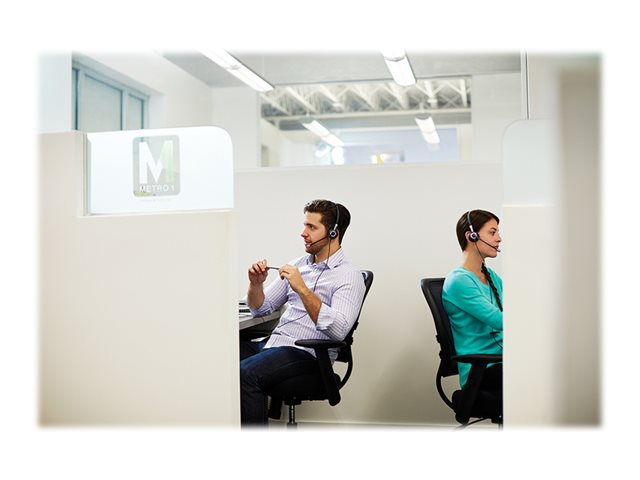 Le BIZ 2400 II offre une qualité d'écoute irréprochable tant en émission qu'en réception pour une expérience d'utilisation optimisée. Grâce à son poids jusqu'à 40% inférieur à celui des micro-casques concurrents et à la faible pression de son serre-tête, l'agent peut se concentrer pleinement sur sa conversation tout en profitant d'un confort inégalé. Le Jabra BIZ 2400 II QD Duo est un micro-casque à deux écouteurs doté d'une prise de déconnexion rapide QD (Quick Disconnect) permettant d'assurer une connexion instantanée avec un large éventail de téléphones fixes.