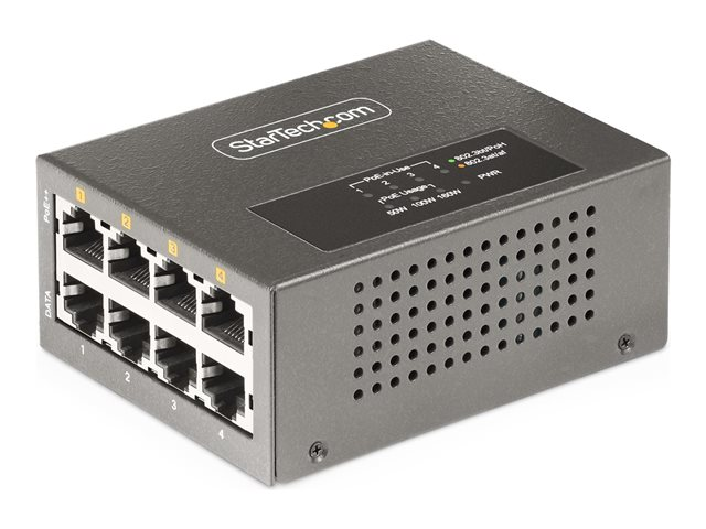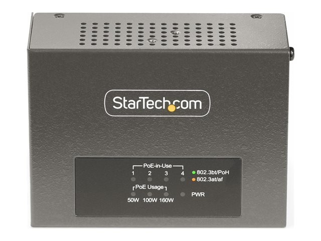 StarTech.com 4-Port Multi-Gigabit PoE++ Injector, 5/2.5G Ethernet (NBASE-T), PoE/PoE+/PoE++ (802.3af/802.3at/802.3bt), 160Watts Power Budget, Wall/DIN Rail Mountable