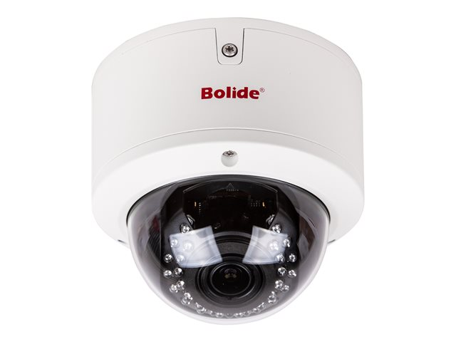Description du produit Bolide - caméra de surveillance - dôme Type de périphérique Caméra de surveillance - fixé - dôme - à l'épreuve du vandalisme / résistant aux intempéries Poids 589.67 g Caméra Couleur - Jour et nuit - NTSC Résolution maximale 2560 x 1920 Type de capteur optique CMOS - 1/2.7" - 5 MP Éclairage minimum 0.1 lux - couleur