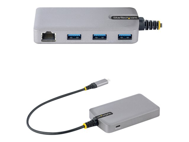 StarTech.com 3-Port USB-C Hub with Ethernet, 3x USB-A Ports, Gigabit Ethernet, USB 3.0 5Gbps, Bus-Powered, USB Type-C Hub w/GbE and 1ft/30cm Long Cable, Portable Laptop USB C Hub Adapter