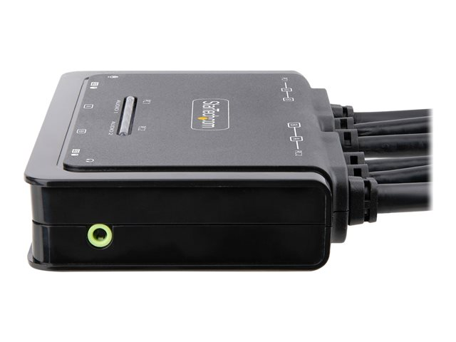 StarTech.com 2-Port Dual-Monitor HDMI Cable KVM Switch, 4K 60Hz, Compact KVM with 5ft/1.5m USB-A/HDMI/Audio Integrated Cables, Bus Powered