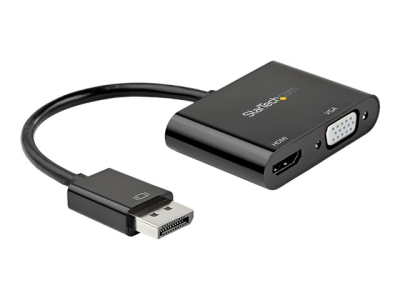 StarTech.com DisplayPort to HDMI VGA Adapter, DisplayPort 1.2 HBR2 to HDMI 2.0 (4K 60Hz) or VGA 1080p Converter Dongle, DP to HDMI or VGA Monitor Adapter, Digital Video Display Adapter - Multiport Video Dongle (DP2VGAHD20) - Adaptateur vidéo - DisplayPort mâle pour HD-15 (VGA), HDMI femelle - 23.2 cm - noir - support 4K
