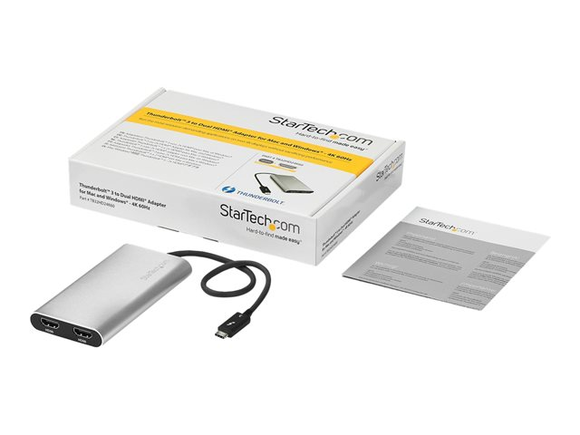 StarTech.com Adaptateur Thunderbolt 3 vers double HDMI - Compatible Windows et Mac - 4K 60 Hz (TB32HD24K60) - Câble adaptateur - 24 pin USB-C mâle pour HDMI femelle - 28.4 m - argent - actif, support 4K60Hz (4096 x 2160) - pour P/N: TB33A1C