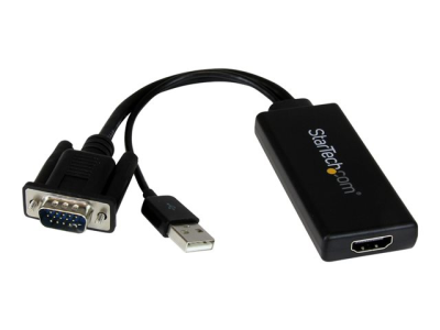 StarTech.com Adaptateur VGA vers HDMI avec audio USB et alimentation USB - Convertisseur portable VGA vers HDMI - M/F - 1080p - Blanc - Câble adaptateur - HD-15 (VGA), USB type B mâle pour HDMI femelle - 26 cm - noir - alimentation USB, support 1080p, actif VGA2HDU