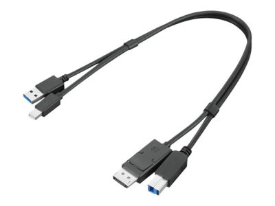 Lenovo Dual Head - Affichage/kit de câble USB - USB type A, DisplayPort (M) pour USB Type B, Mini DisplayPort (M) - USB 3.0 - 43 cm - noir - pour ThinkCentre M75t Gen 2; ThinkStation P340; P350