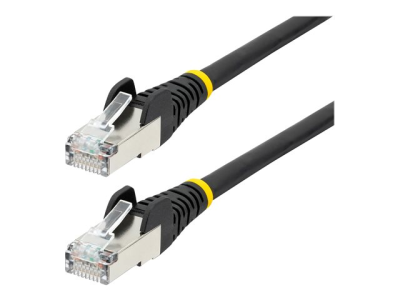StarTech.com 1.5m CAT6a Ethernet Cable - Black - Low Smoke Zero Halogen (LSZH) - 10GbE 500MHz 100W PoE++ Snagless RJ-45 w/Strain Reliefs S/FTP Network Patch Cord - Cordon de raccordement - RJ-45 (M) pour RJ-45 (M) - 1.5 m - S/FTP - CAT 6a - IEEE 802.3bt - sans halogène, moulé, sans crochet, bloqué - noir NLBK-150-CAT6A-PATCH