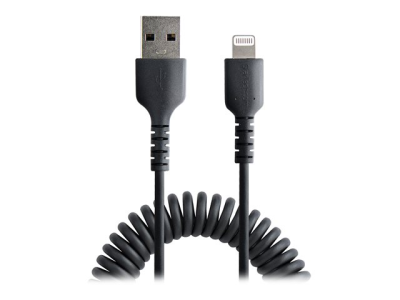 StarTech.com Câble USB vers Lightning de 1m - Certifié Mfi - Adaptateur USB Lightning Noir, Gaine en TPE - Cordon Chargeur Iphone/Lightning Spiralé en Fibre Aramide Très Résistant (RUSB2ALT1MBC) - Câble Lightning - USB mâle pour Lightning mâle - 1 m - noir - bobiné RUSB2ALT1MBC
