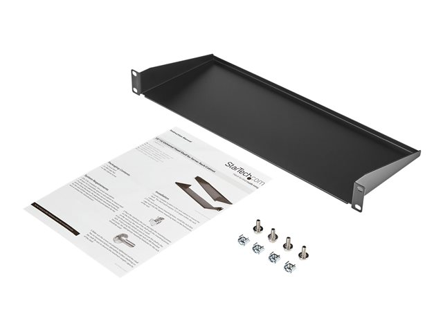 StarTech.com 1U Server Rack Cabinet Shelf, 7in Deep Fixed Cantilever Tray, Rackmount Shelf for 19" AV/Data/Network Equipment Enclosure with Cage Nuts & Screws, 33lbs Weight Capacity - 1U Rack Shelf 7" Deep (CABSHELF1U) - Étagère pour rack - noir - 1U - 19" - pour P/N: RK12OD2, RK2537BKM, RK3236BKF, RK4236BKB, RK4242BK24, RK4242BK30, RKQMCAB12V2