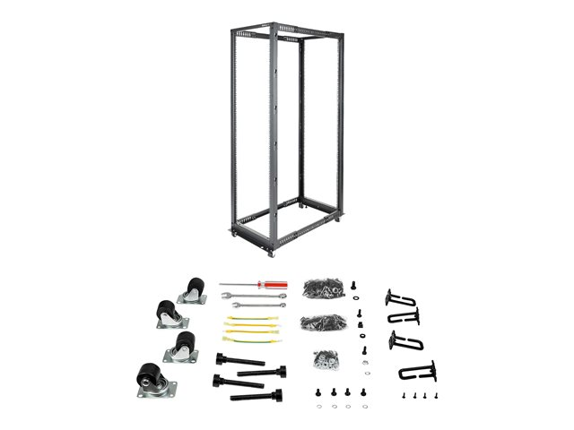 StarTech.com Rack de serveur réglable à cadre ouvert 42U 4 montants - Bâti rack avec roulettes et gestion de câbles (4POSTRACK42) - Rack - noir - 42U - pour P/N: CABSCREWM5B, CABSCREWSM5, CABSCREWSM5B, CABSCREWSM62, CABSCREWSM6B, CABSCRWS1224