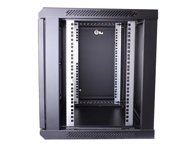 Ce coffret mural de hauteur 6U, de largeur 600mm et de profondeur 600mm est livré avec deux rails en L pour poser vos équipements. Ses aérations disposées sur les niveaux supérieurs assurent une circulation optimale de l'air. La porte avant ainsi que les panneaux latéraux peuvent se verrouiller (clés fournies) pour une meilleure sécurité de votre installation. Les ouvertures en position basse du coffret et celle du toit sont prédécoupées pour faciliter l'installation des ventilateurs et le passage des câbles.