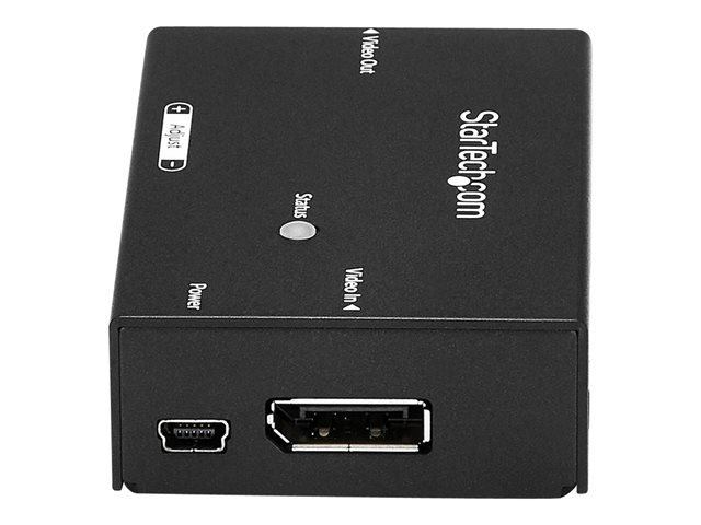 Grâce à l'amplificateur de signal DisplayPort, vous pouvez optimiser la puissance du signal de votre source vidéo DisplayPort à l'aide de câbles DisplayPort standard. Vous pouvez ainsi atteindre une résolution maximale de 4K à 60 Hz et, selon la résolution recherchée, l'amplificateur peut produire une résolution 1080p 60 Hz à des distances variables pouvant atteindre 20 m. Pour les applications en ligne, vous pouvez placer l'amplificateur entre deux câbles DisplayPort à une distance maximale de 15,2 m de l'entrée vidéo, et à une distance maximale de 4,6 m de la sortie vidéo.
